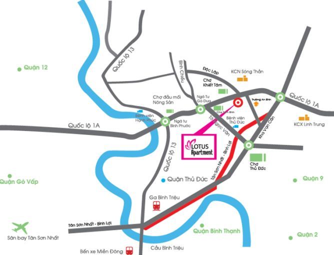 Lotus Apartment có vị trí đắc địa tọa lạc tại mặt tiền đường Quốc Lộ 1A, liền kề đường Tân Sơn Nhất - Bình Lợi, con đường trọng điểm Đông Sài Gòn.